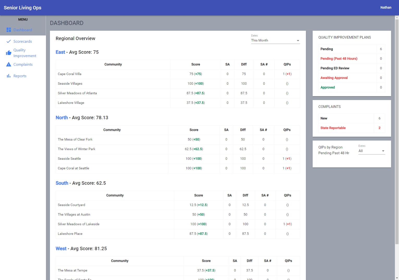 Track how your communities are upholding your standards. Easily compare their self assessments with scores from your regional staff.